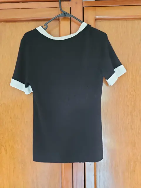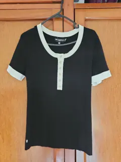 Blusa mediana marca original, tela de punto blanco con negra casual