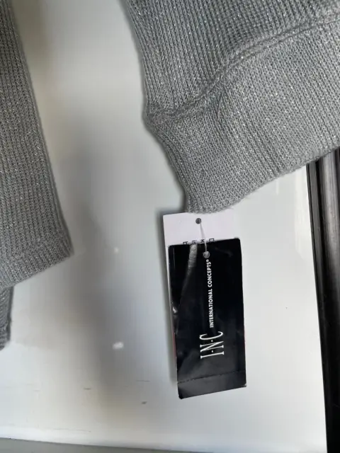 Blusa de punto INC plata XXL. Blusa nueva con etiqueta, marca INC. Color gris con hilo plateado. Detalle al frente.