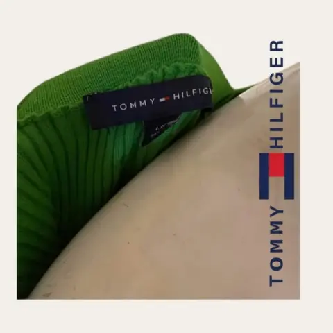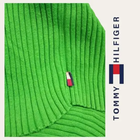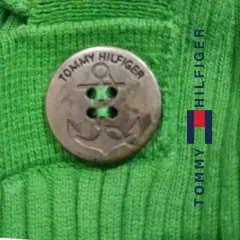 Blusa de punto verde limón Tommy Hilfiger L. Blusa verde Tommy Hilfiger t L escote rectangular botones grabados de la marca bandera de la marca en costura lateral izquierdo, material 76% algodón 24% nylon. 42cm hombros 41cm axila a axila 59cm largo