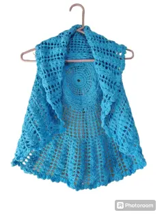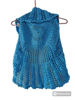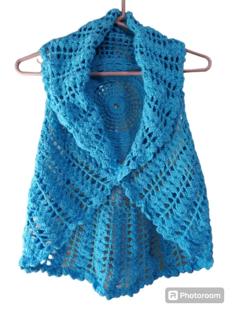 Blusa de tejido para Dama. Blusa de tejido para Dama en color azul con cuello, se puede usar abierto y cerrado, talla mediana, sin marca.