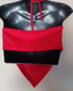 Blusa tipo top con tirante atado al cuello en color rojo de hombro descubierto tela tipo algodon