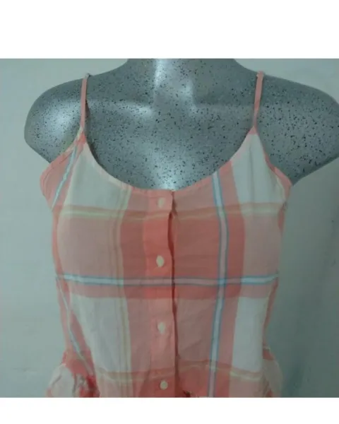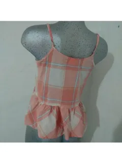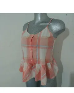 Blusa de tirantes. Blusa de tirantes botones en el pecho color naranja a cuadros talla chica tela algodón