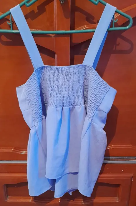 Blusa de tirantes. LINDA BLUSA●Tela suave y fresca.●Bonito diseño al frente y en la parte de atrás.●Tiene una pequeña marchita muy leve en la parte de atrás. ●Tiene resorte ennel pecho.Sus medidas son: ▪︎ANCHO 51 cm ya estirando todo el resorte.▪︎LARGO 37 cm