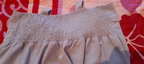 LINDA BLUSA●Tela suave y fresca.●Bonito diseño al frente y en la parte de atrás.●Tiene una pequeña marchita muy leve en la parte de atrás. ●Tiene resorte ennel pecho.Sus medidas son: ▪︎ANCHO 51 cm ya estirando todo el resorte.▪︎LARGO 37 cm