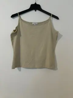 Blusa color beige de tirantes , tela lycra , cuello redondo , talla 36