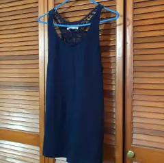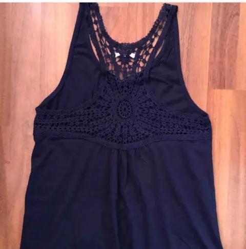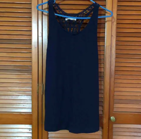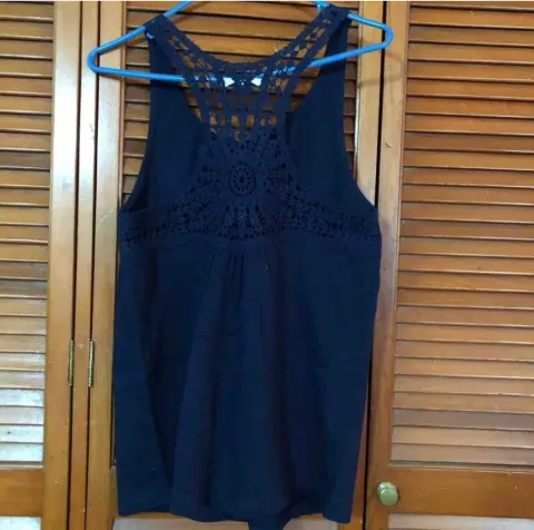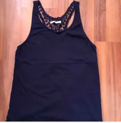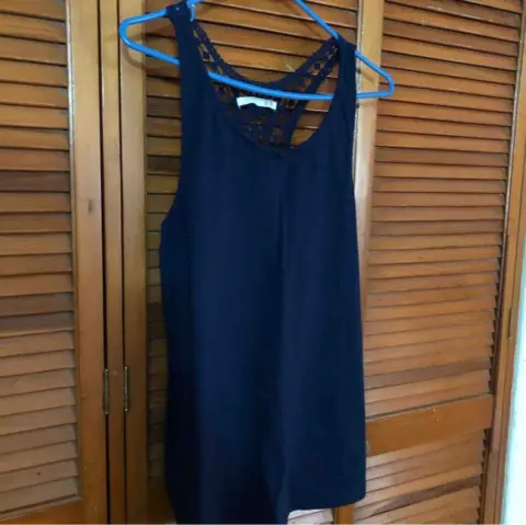 Blusa de tirantes bordado Bershka en la espalda, azul marino, talla mediana, usado solo una vez.
