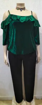 Blusa de tirantes con manga 3/4 color verde con collar incluido Tela terciopelo Talla 40