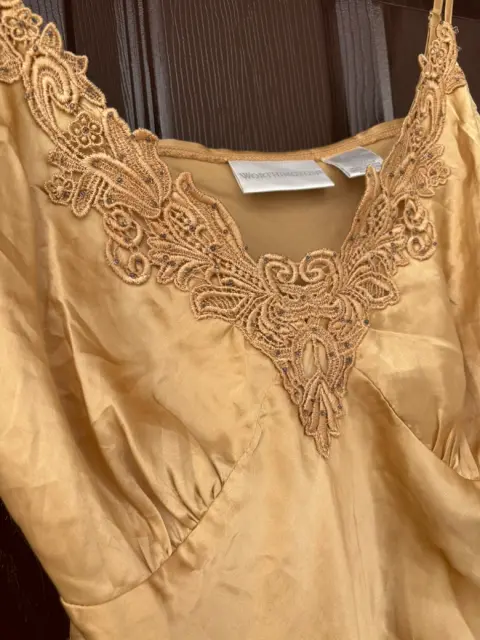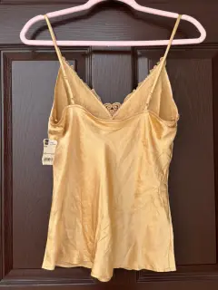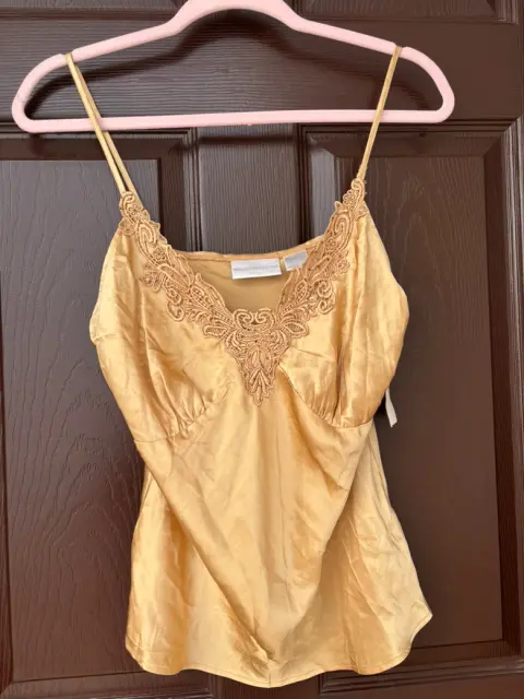 Blusa de tirantes en color dorado con tipo piedritas al frente, en talla M de la marca Worthington