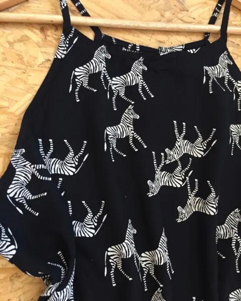 Blusa de tiras. Hermosa blusa de tiras, en color negro con blanco, estampado de cebras, de tela de algodón súper fresca.