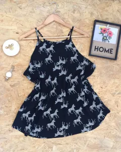 Hermosa blusa de tiras, en color negro con blanco, estampado de cebras, de tela de algodón súper fresca.