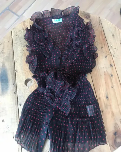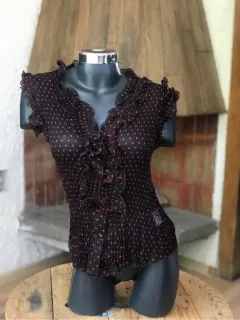 Padrísima blusa larguita de transparencia es talla chica pero puede quedar alguien mediano excelente precio y calidad usarla para algo casual formal