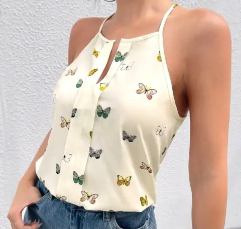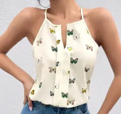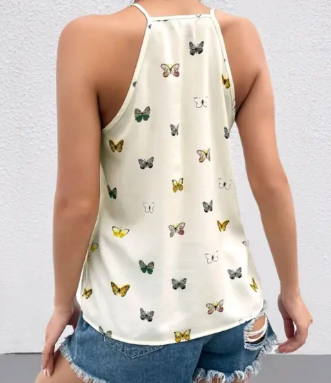 Blusa de turantes estampado mariposa. Bonita Blusita de tirantes con estampado de mariposa, Shein talla M.Largo 62cmContorno pecho 94cm