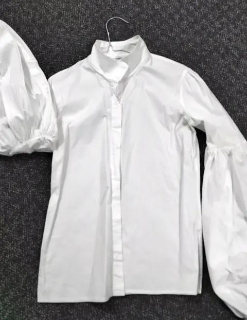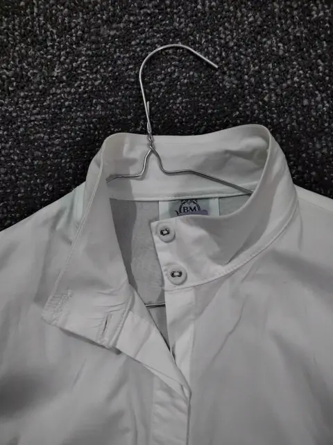 Blusa de vestir, marca Beatriz Mead, color blanca, medidas de axila a axila 48.5, talla M, elegante diseño con botones forrados