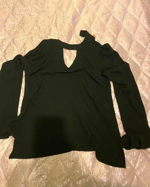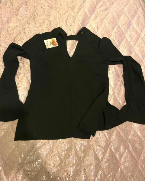 Blusa de manga larga y tipo española y con botón extra, escote en V