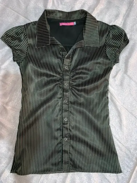 Blusa de vestir a rallas Nueva sin etiqueta Una foto es con flash la otra a luz natural Talla S, pero viene reducida es XS