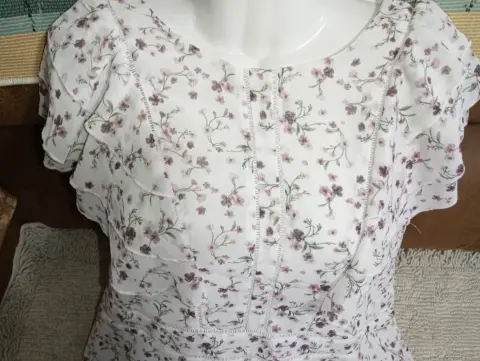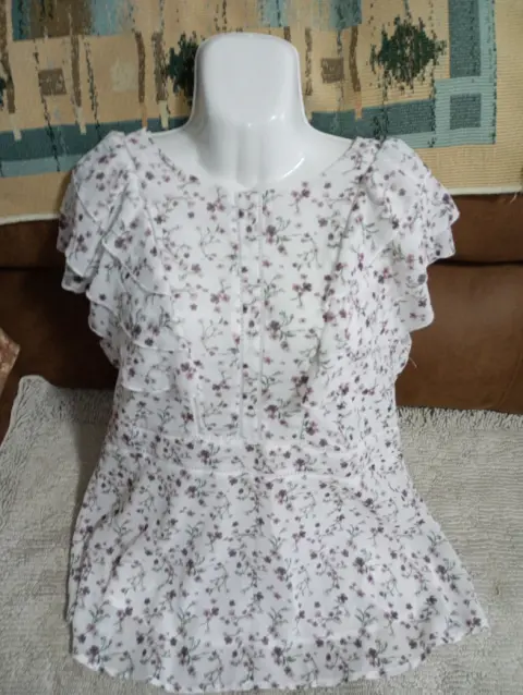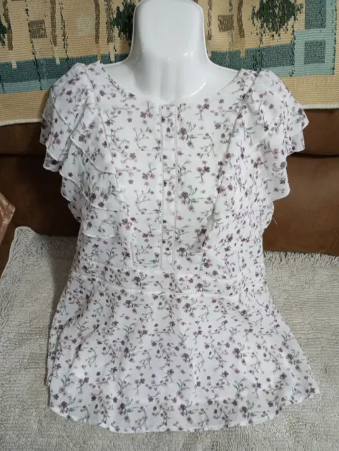Hermosa blusa de vestir floreada, con detalles super lindos en mangas, botón en la parte de atrás, cuenta con un tipo fondo para que no se transparente, ideal para la oficina o algún evento formal, marcada como talla XL pero va más a una talla L
