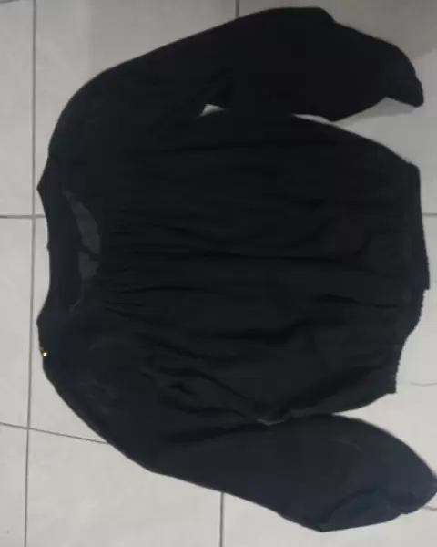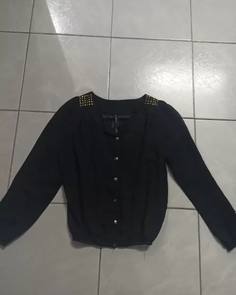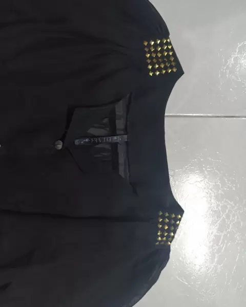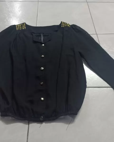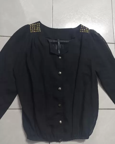 Blusa de vestir negra. Linda blusa de manga larga, tela transparente, con estoperoles en color dorado