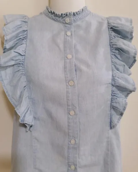 Blusa denin light con olanes. ❇️visita el resto de mi closet hay prendas super lindas, Si te gustaron varias prendas puedes armar tu paquete & MEJORAMOS considerablemente el precio ❇️✨HACEMOS ENVÍOS DIARIO✨ Bellísimo diseño, Es el modelo indicado para toda ocasión, super tendenciaTalla M, marca denmin, medidas de axila a axila 38, largo 56