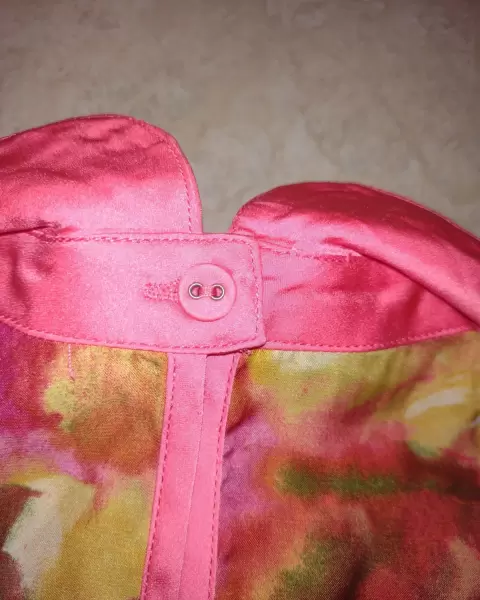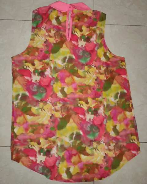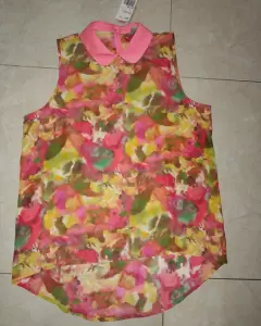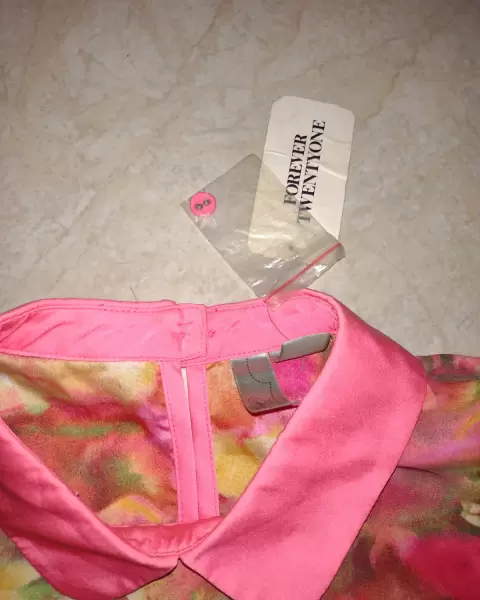 Blusa desmangada con cuello Peter Pan forever 21. Los tonos son entre fosfo y mate, estampado tipo "pintura de cuadro"