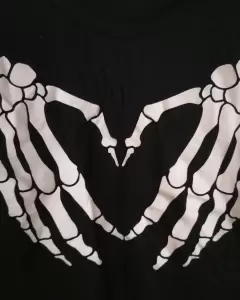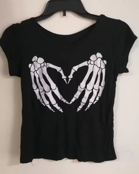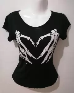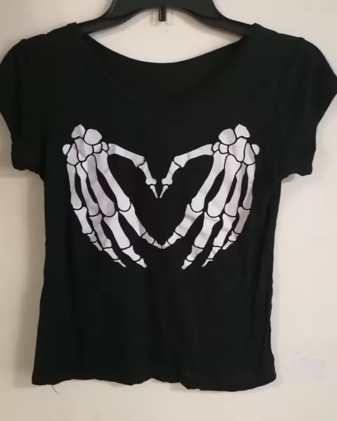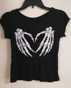 Blusa con manos de calaveraColor: NegroTalla: UnitallaMedidas: *De axila a axila 38 cm*Largo desde los hombros 48 cmCupón: JanMoPBn0H