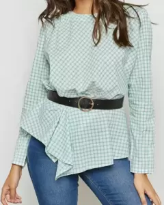 💟 Blusa Diseño Vichy con bajo asimétrico - Marca: MANGO (Original) - Color: Combinación Blanco/Verde - Talla: S - Medidas: Hombro a hombro: 39cm ○ Sisa a sisa: 43cm ○ Cintura: 33cm ○ Largo Manga: 58cm - Más detalles: Cuello redondo. Manga larga. Cintura entallada. Detalle fruncido con elástico en espalda. Cierre de botón en la parte posterior - COMPLETAMENTE NUEVA ... Te interesa alguna de mis prendas !!?? Considera que los precios indicados incluye el cobro de gastos y comisión de la AppTODAS las prendas 👕👖👗🧥🥼👟👢👠📿👚👛👜🎒 se encuentran en EXCELENTE ESTADO y condiciones de uso 💯% GARANTIZADOS‼️‼️ANÍMATE, NO LO PIENSES MÁS‼️💥NO TE VAS A ARREPENTIR 💟