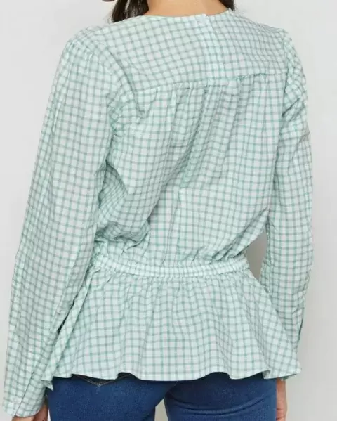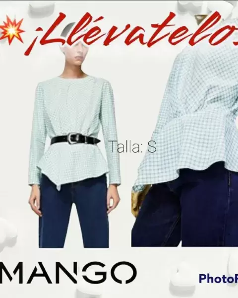 💟 Blusa Diseño Vichy ❣MANGO 💟. 💟 Blusa Diseño Vichy con bajo asimétrico - Marca: MANGO (Original) - Color: Combinación Blanco/Verde - Talla: S - Medidas: Hombro a hombro: 39cm ○ Sisa a sisa: 43cm ○ Cintura: 33cm ○ Largo Manga: 58cm - Más detalles: Cuello redondo. Manga larga. Cintura entallada. Detalle fruncido con elástico en espalda. Cierre de botón en la parte posterior - COMPLETAMENTE NUEVA ... Te interesa alguna de mis prendas !!?? Considera que los precios indicados incluye el cobro de gastos y comisión de la AppTODAS las prendas 👕👖👗🧥🥼👟👢👠📿👚👛👜🎒 se encuentran en EXCELENTE ESTADO y condiciones de uso 💯% GARANTIZADOS‼️‼️ANÍMATE, NO LO PIENSES MÁS‼️💥NO TE VAS A ARREPENTIR 💟