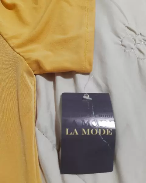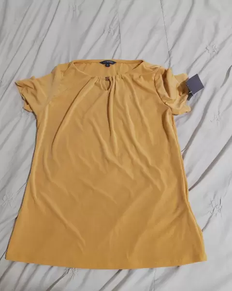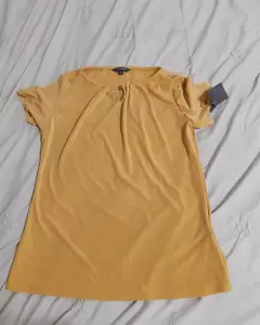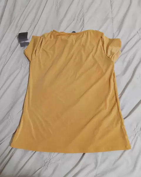 Blusa dorada, olgada, cómo de licra, muy fresca, manga corta, nueva con etiqueta, me quedo muy grande