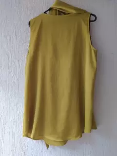Blusa dorada con liston. Hermosa blusa dorada con liston que se puede usar de varias formas, tela suave y cómoda, viene larga y ancha. Es S pero le quedaría a una M.