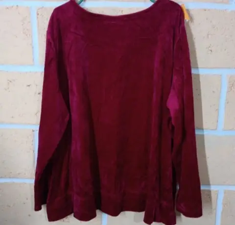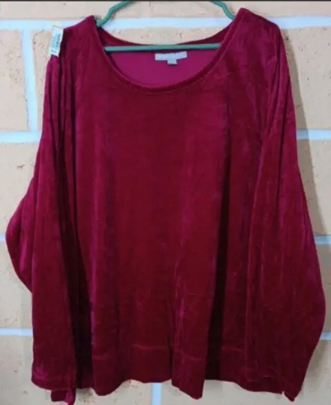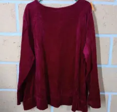 Blusa elegante de terciopelo. Marca Woman WithinColor rojoTela terciopeloTalla 2XLStrech50cm hombro a hombro70cm axila a axila73cm largo1er imagen solo de referencia **