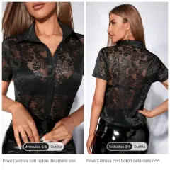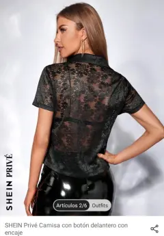 Blusa encaje. Camisa con boton delantero con encajeMEDIDASHombro 42 cm, largo 58.5 cm, largo de la manga 19.3 cm, pecho 108 cm, puño 37.6 cm