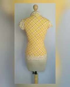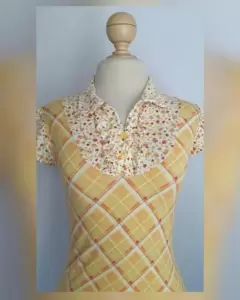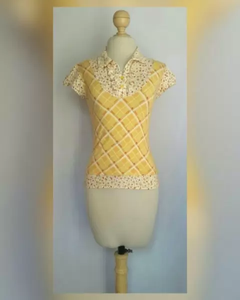 Blusa entallada estilo campesino c/estampado floral en tonos AMARILLOS/NARANJAS, cuello clásico c/solapas, escarolas y botonadura simulada, manga corta abullonada terminada en elástico. Talla EG (MUY REDUCIDA, da a S/M). Dimensiones: 38 hombro, 41 axila, 35 cintura, 43 zona baja, 58 largo, 11 largo manga.92% rayón, 8% spandex. P/lavado en casa.**SIN DETALLES, SE USO SOLO UNA VEZ P/UN PAR DE HRS**