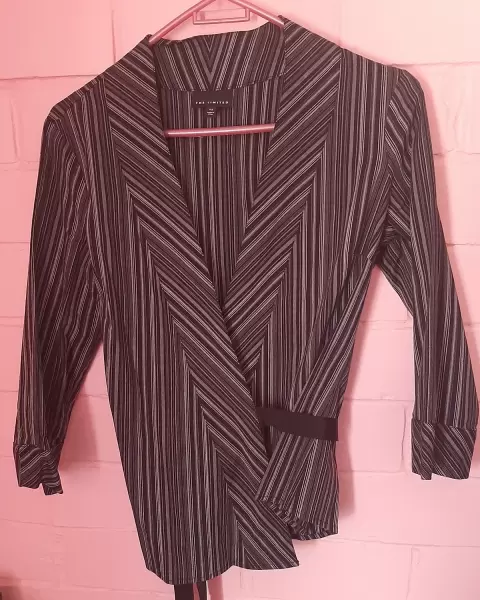 Blusa envolvente. Blusa envolvente, de color negro, con gris, tipo de manga 3/4.