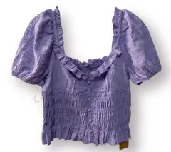 Blusa escote corazon. Blusa lila escote corazon con manga fruncido cintura con fruncido de elastico