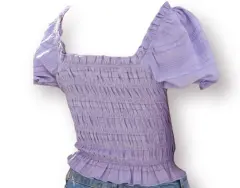 Blusa lila escote corazon con manga fruncido cintura con fruncido de elastico