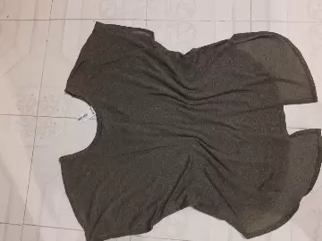 Ligera blusa con cuello redondo escote en la espalda y corte tercero de cola de pato sin detalles casi neva solo una puesta