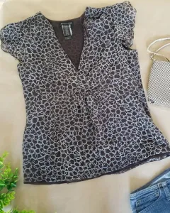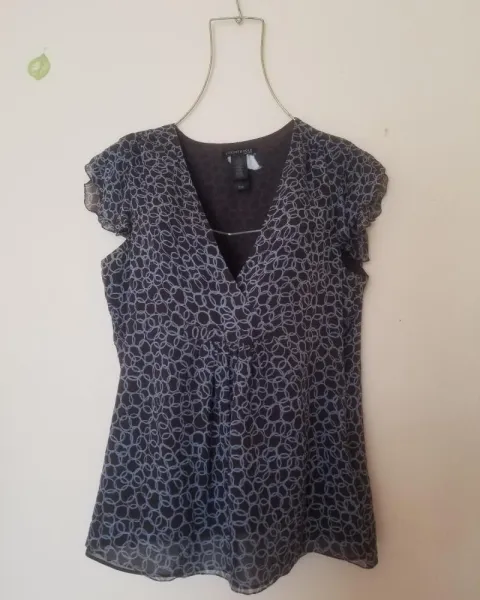 Blusa escote V. La tela es fresca y muy bonita de buena calidad, luce muy bonito el escote v y las mangas estilo mariposa.