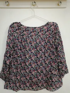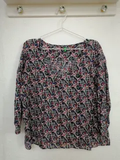 Blusa estampada. Blusa Benetton estampada con formas geometricas, tela delgada, fresca,manga larga. Talla mediana, amplia.