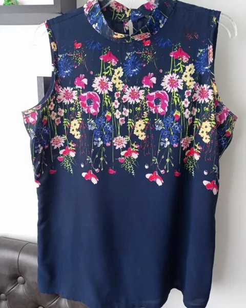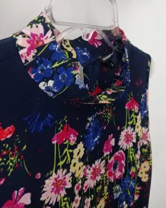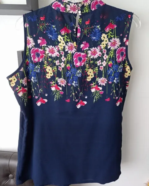BONITA BLUSA ESTAMPADA CON FLORES.TALLA GRANDE.TELA: 97% POLIÉSTER Y 3% ELASTANO.MEDIDAS: Pecho 54 cm de frente y 54 cm de atrás. Sisa 26 cm y 27 de sisa trasera. Hombro 9.5 cm. Largo de enfrente 67 cm. Largo de atrás 70 cm.Para combinar con pantalón rosa, amarillo, verde, blanco o jeans.Muy bien cuidada.