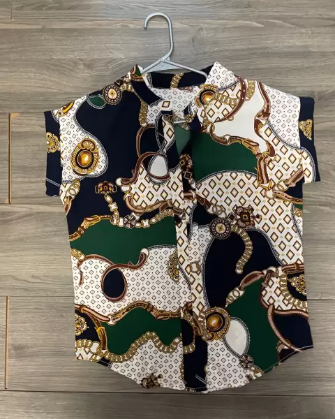 Blusa estampada de moda. Padrisima blusa fresca, combinable y cómoda cadenas modernas en estampado