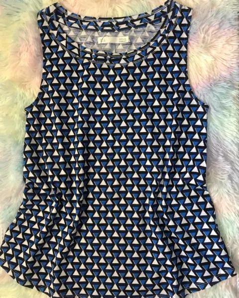 Blusa estampada sin mangas Sfera. Hermosa blusa estampada sin mangas, corte Relajado, cuello redondo. Largo de blusa 64 cm. De axila a axila 42 cm. Nueva