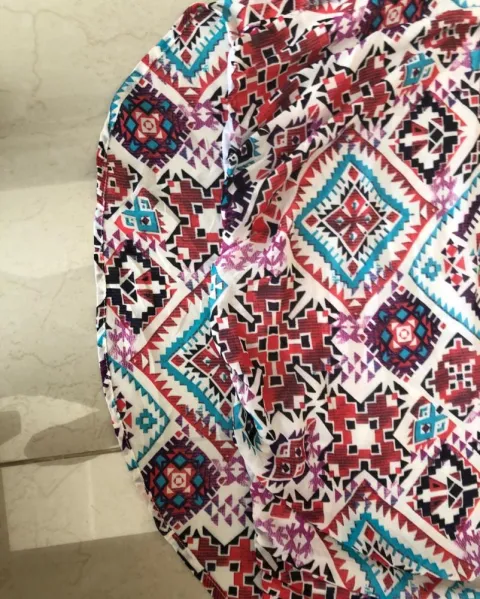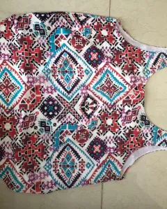 Camiseta de dama con estampado lde colores, talla M pero viene reducida, es talla M (viene reducida), y tiene resorte en la parte de enfrente y atras es larga, es totalmente nueva,