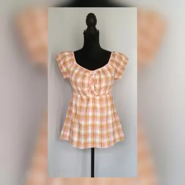 Blusa estilo Campesino corte Imperio. Blusa estilo campesino en tonos ROSAS/NARANJAS/BLANCO e hilo metalizado color PLATA, cuello redondo, elástico en cintura p/mejor ajuste y manga cap. Talla 11 (REDUCIDA, da mejor a 7). Dimensiones cms: 37 hombro, 39 axila, 33 cintura (da hasta 47), 59 zona baja, 58 largo, 5 largo manga. 95% algodón, 2% lurex, 3% spandex. P/lavado en casa.***NUEVA, LE QUITE LA ETIQUETA P/USARLA Y NO ME QUEDÓ***El hilo metalizado le da un detalle muy bonito***