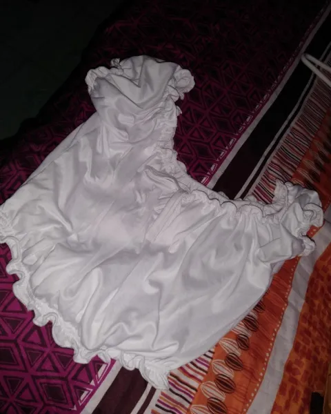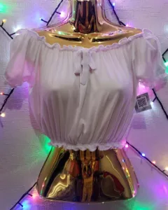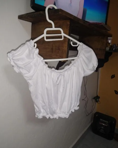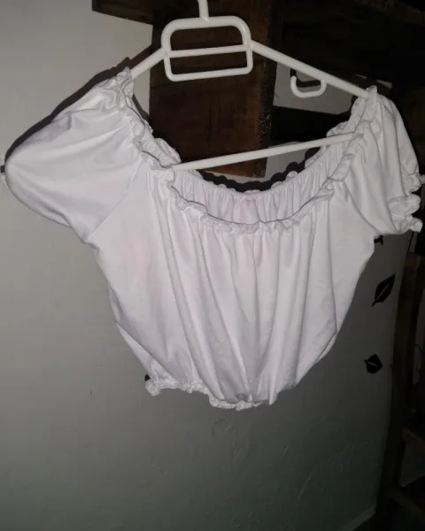 Blusa estilo top. Blusa tipo top con olanes de color blanco. Juvenil