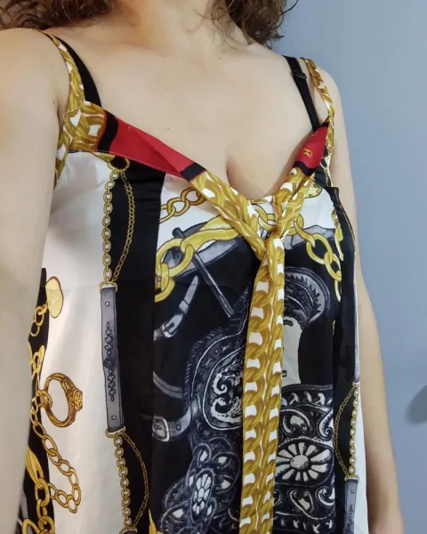 Blusa estilo Versace. Blusa de tirantes estampada , blusa super bonita y moderna, con jeans se ve super cool . La.modelo es talla M y pesa 66kg.