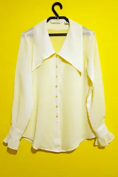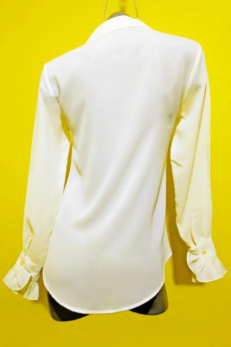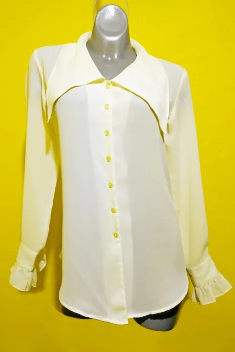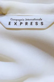 BLUSA EXPRESS TALLA CHICA. COLOR CREMA, LA TELA TIENE TEXTURA COMO GASA, TALLA CHICA, MEDIDAS DE UNA CARA: HOMBRO A HOMBRO 40 CM, LARGO MANGA 62 CM, AXILA A AXILA 46, LARGO 72 CM.