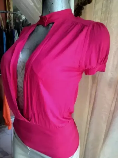 Hermosa blusa con abertura en v parte delantera color fiucha tal cual fotos talla mediana 40 cm accila a accila sin estirar 60 cm largo