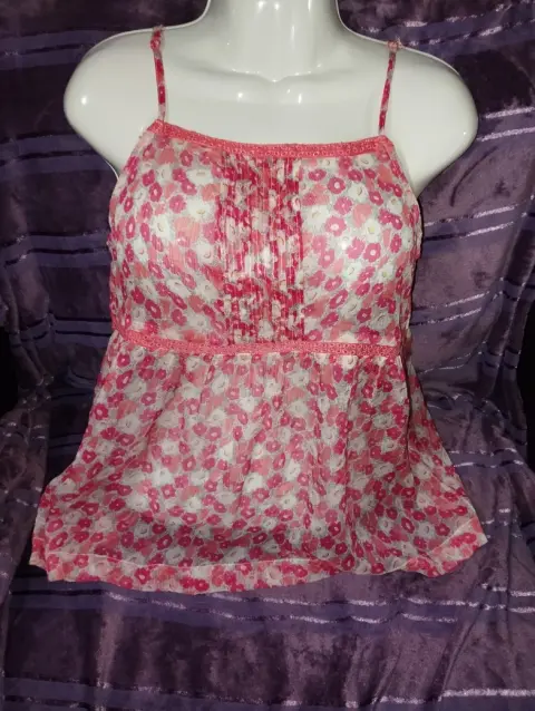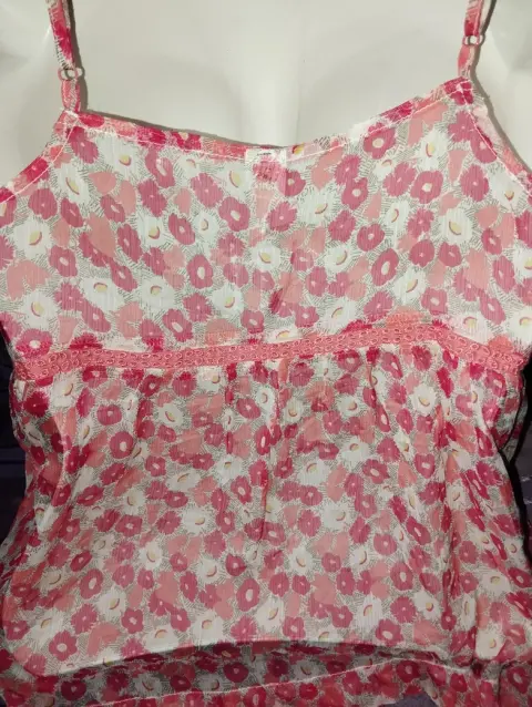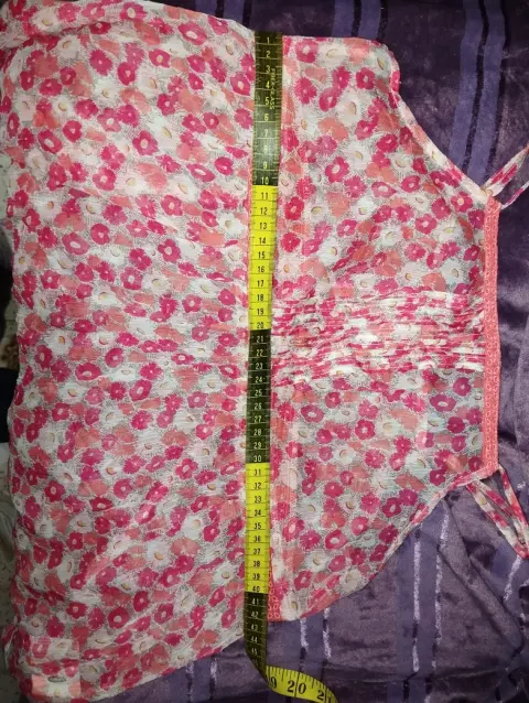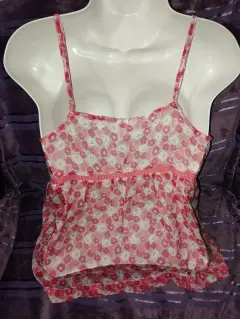 Bonita blusa de tirantes, floreada, tela transparente, fresca, no estira, cuenta con detalle drapeado en el pecho así como detalle de encaje que le da una forma muy bonita. Marcada como talla XS , puede quedar hasta M. Medidas en la ultima foto🥰 ideal para un outfit casual 🥰