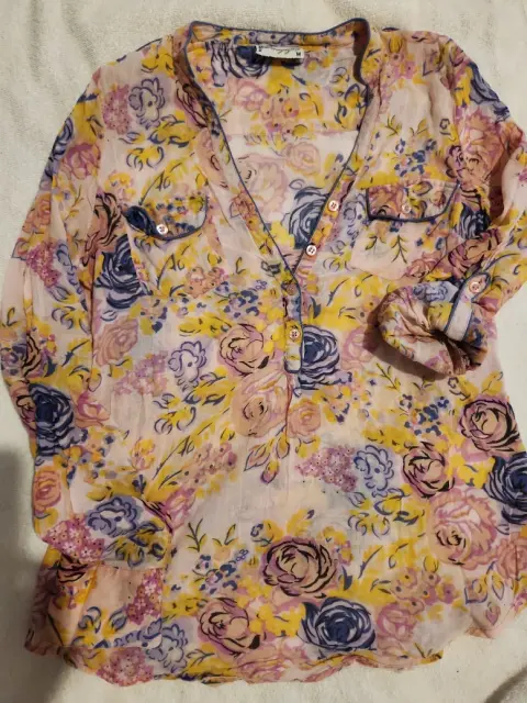 Blusa delagada, de algodón, marca magazine, estampado floral, manga larga, talla Mediana, fresca y muy cómoda