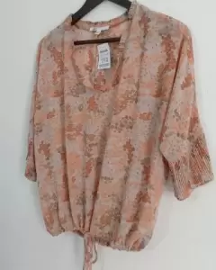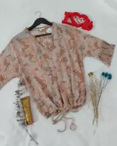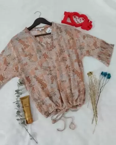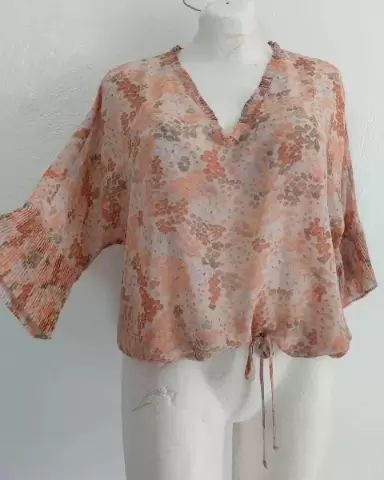 Blusa floral melón. Nueva! Sin detalles. Divina! Talla S, para lucir bella y formal. Sin strech. Tiene jareta en la parte para ajustar. Muy cómoda