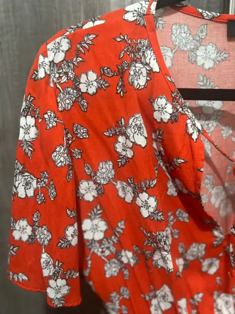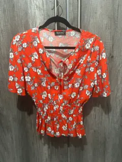 Preciosa blusa floreada naranja con blanco, talla chica a mediana, nueva sin etiqueta